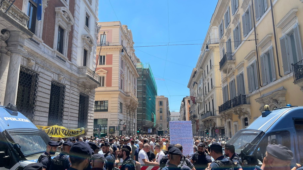 Taxi, tensione alle stelle per far cedere Mario Draghi: auto ferme, Palazzo Chigi blindato