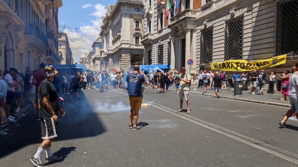 Proseguono anche oggi le proteste dei tassisti arrivati a Roma da diverse parti d’Italia. Il corteo si è radunato in via del Corso intorno alle 11 e sono stati sparati diversi petardi e fumogeni. Inoltre sono stati intonati cori di protesta contro il governo e il ddl concorrenza. Presenti le forze dell’ordine in tenuta antisommossa, che hanno blindato piazza colonna e l’accesso a Palazzo Chigi da diverse strade limitrofe. Sei tassisti sono incatenati a Piazza Colonna e hanno fatto sapere che fino a che non saranno ricevuti da Mario Draghi porteranno avanti la propria protesta. Intanto sale il livello di tensione su via del Corso: decine di bombe carte sono state esplose sotto gli occhi degli agenti. Al momento non ci sarebbero persone fermate. Le auto bianche sono critiche con l’articolo 10 del Ddl Concorrenza che delega il governo alla riforma del trasporto pubblico non di linea: secondo i manifestanti la liberalizzazione danneggerebbe la categoria. “Giù le mani dalla licenza” uno degli slogan scanditi, oltre a insulti verso Draghi e la società Uber.