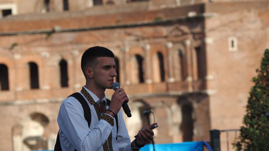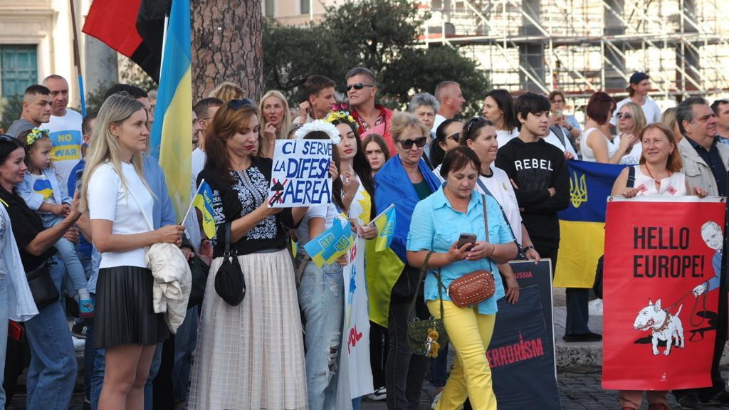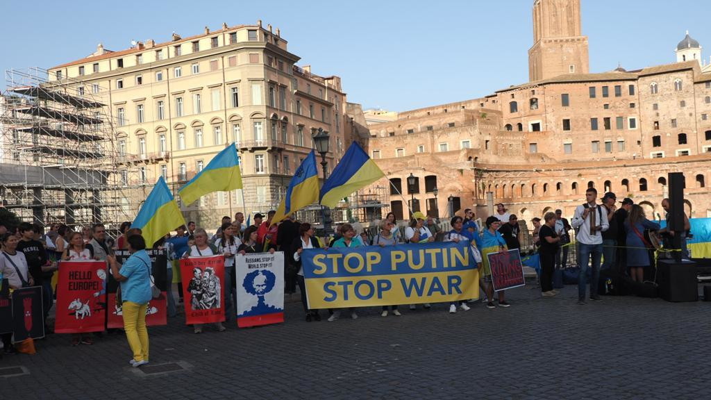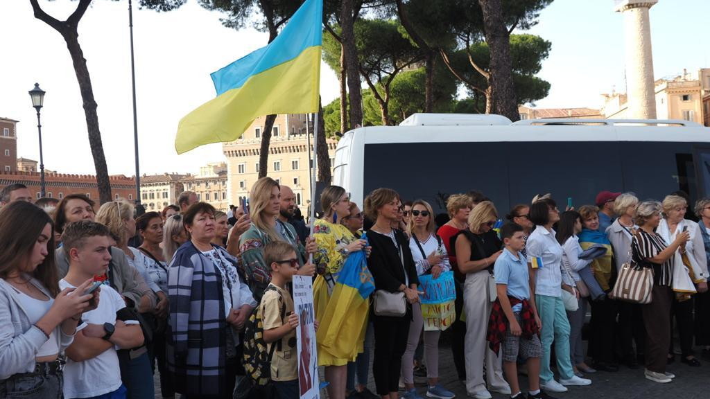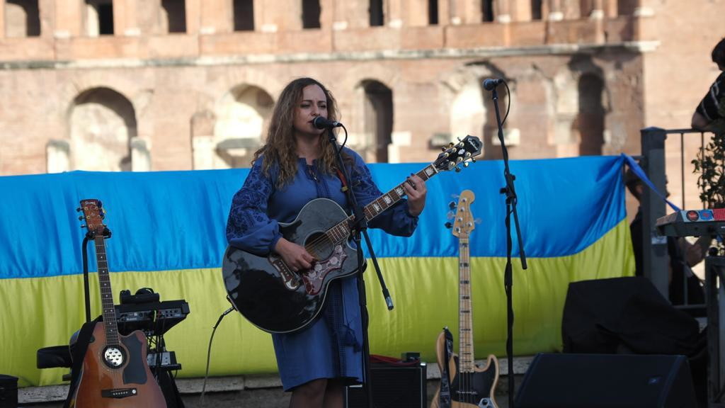 All’inizio di via dei Fori imperiali, in piazza Madonna di Loreto, l’Associazione cristiana degli ucraini in Italia ha organizzato la manifestazione "Gli artisti ucraini contro l’aggressore russo". In strada si sono esibiti diversi cantanti ucraini che hanno raccontato, tramite la propria musica e le proprie canzoni, la terribile guerra che il Paese sta vivendo da mesi. (Foto Vito Nobile)