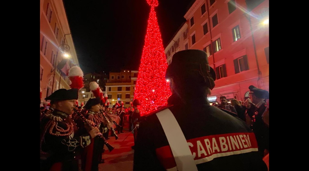 Acceso in piazza San Lorenzo in Lucina a Roma l’albero di Natale voluto dall’associazione "Piazza San Lorenzo in Lucina". L’albero, in materiale completamente riciclato e con luci led a basso consumo, è stato sponsorizzato da FeUse, società benefit, specializzata nella creazione di una linea di oggetti di collectible design, composta da pezzi originali ed esclusivi, concepiti secondo i criteri più innovativi e sostenibile dell’economia circolare. La cerimonia di accensione è stata benedetta da monsignor Vincenzo Paglia e accompagnata da un concerto della Banda dei Carabinieri.