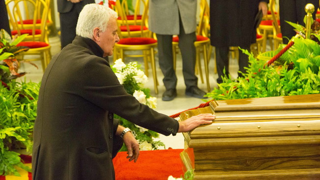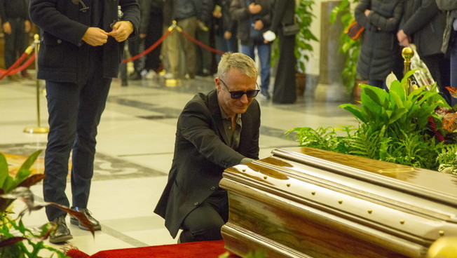 Diaco distrutto dal dolore, il gesto davanti al feretro di Maurizio Costanzo