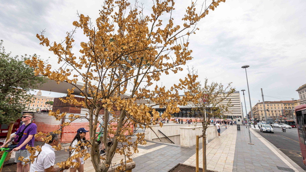 Qualcosa non va sul verde di Roma. Per rendersene conto è sufficiente guardare gli alberi appena piantati, e già secchi, in tante delle piazze riqualificate grazie ai fondi del Giubileo. Le nuove piante avrebbero dovuto offrire ombra e refrigerio lì dove non c’era e contribuire al ricambio di ossigeno di una città soffocata dal traffico,invece basta concedersi una passeggiata dalla stazione Termini e piazza della Repubblica, passando da piazza San Giovanni, per arrivare a piazza Risorgimento e lungotevere, per scoprire che le cose sono andate diversamente. Prati gialli e alberi rinsecchiti, anche di grosse dimensioni (costati quindi cifre considerevoli e in teoria più resistenti) che catapultano i passanti in un attimo in uno scenario da autunno inoltrato. Invece siamo a fine primavera e le chiome dovrebbero essere lussureggianti. Eppure, come previsto dai bandi affidati dal Comune per il Giubileo,le ditte appaltatrici dovrebbero occuparsi di garantire la salute delle piante per tutto il periodo di attecchimento, quindi da uno a due anni. Il Tempo in questi giorni ha svolto un piccolo censimento e i risultati parlano chiaro.
