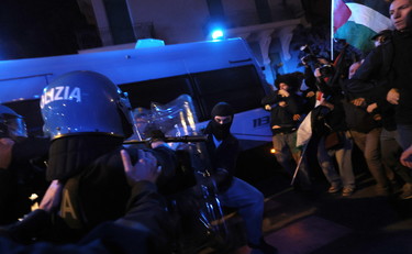 I ProPal provano a forzare il blocco, scontri e idranti in azione