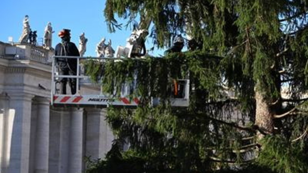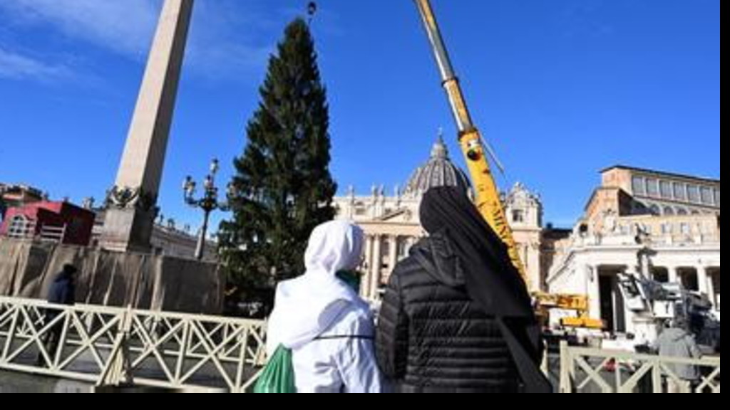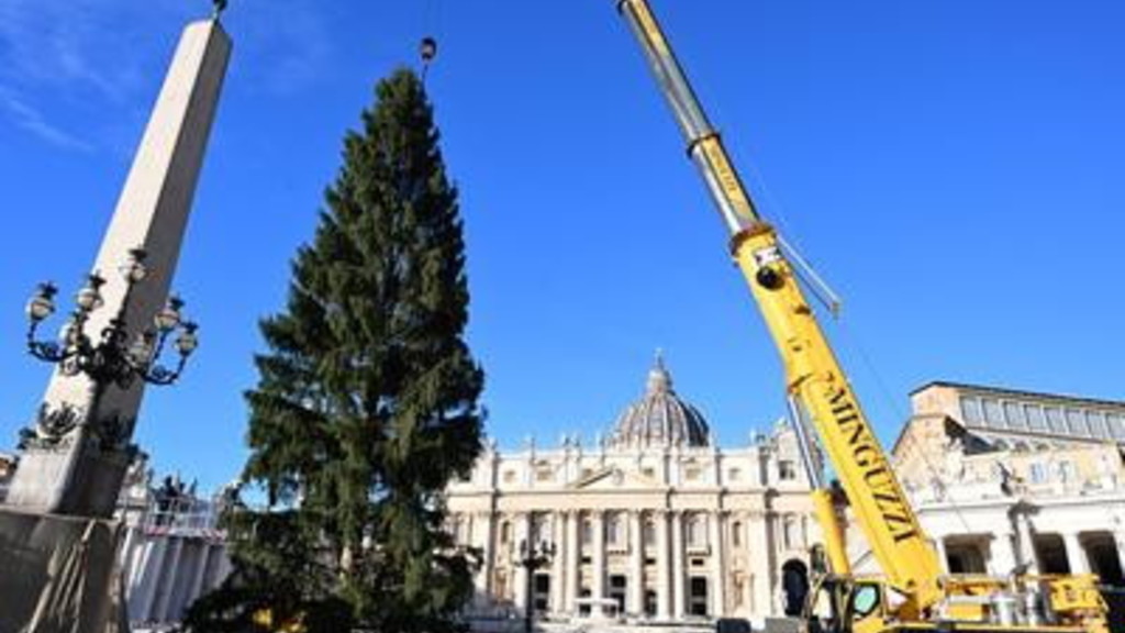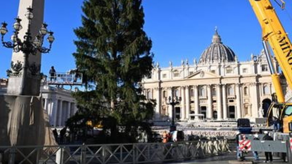 Con l'ausilio di una gru, in piazza San Pietro è stato innalzato questa mattina l'albero di Natale. È stato collocato nell'area dove sarà allestito anche il presepe proveniente dalla provincia di Salerno, in Campania. L'abete, alto 27 metri, è stato prelevato dalla valle alpina di Ultimo, non lontano da Bolzano, in Trentino-Alto Adige. È offerto alla Santa Sede dai comuni di Lagundo e Ultimo. "Il taglio dell'albero - ha affermato il vescovo di Bolzano-Bressanone, monsignor Ivo Muser - non è un atto irrispettoso, ma il frutto di una gestione forestale oculata, dove il prelievo è parte di una cura attiva che garantisce la salute del bosco e ne tiene sotto controllo la crescita".