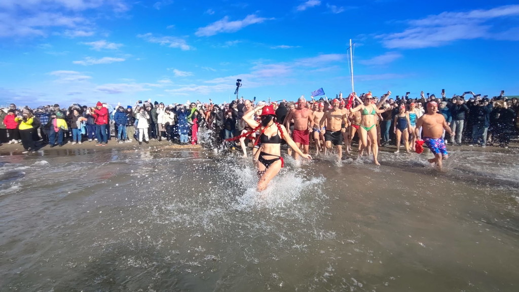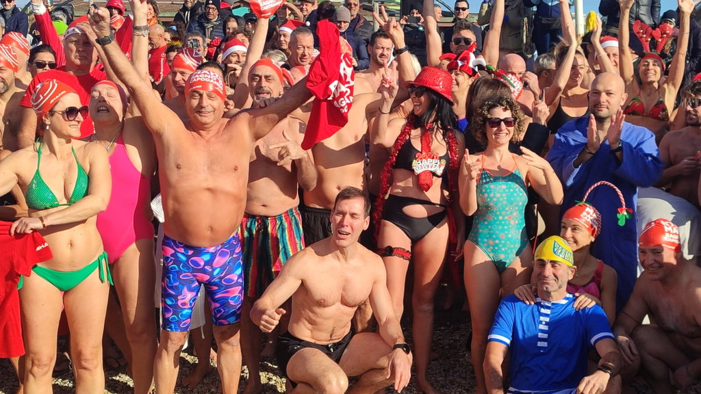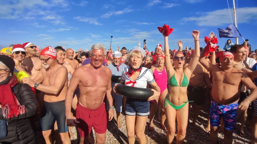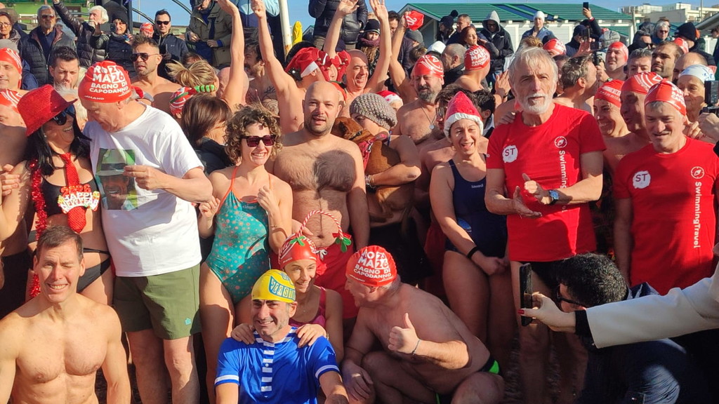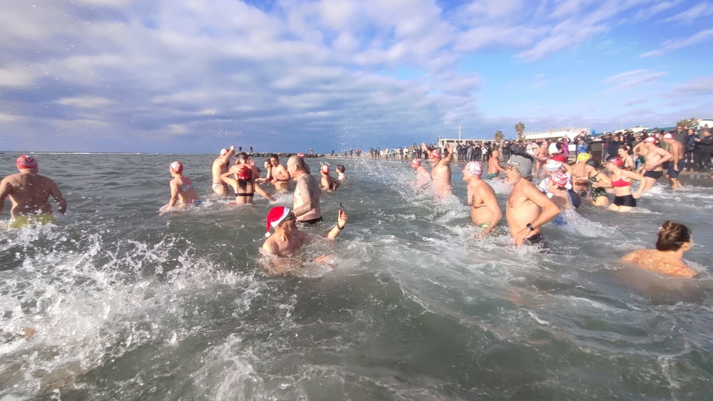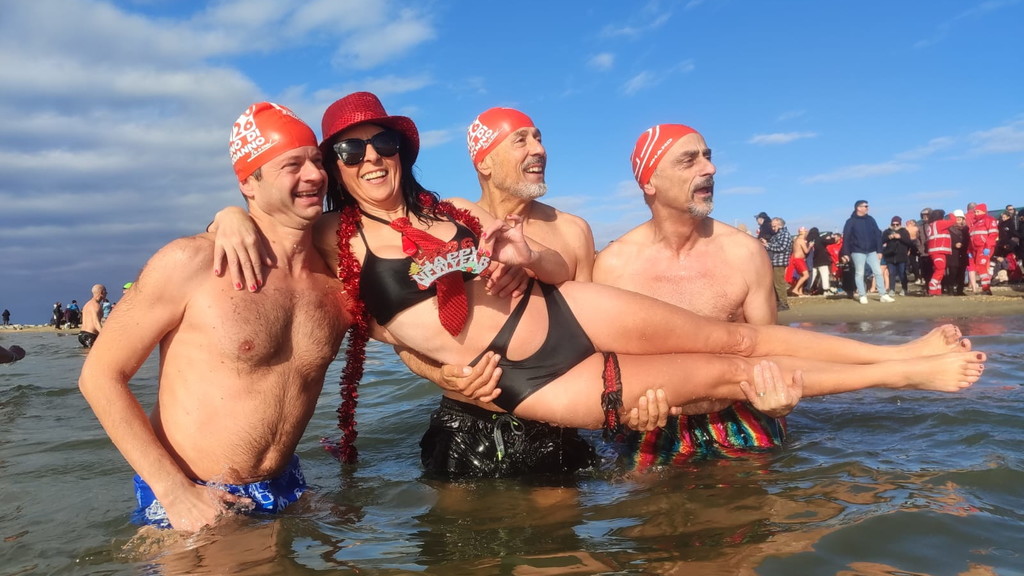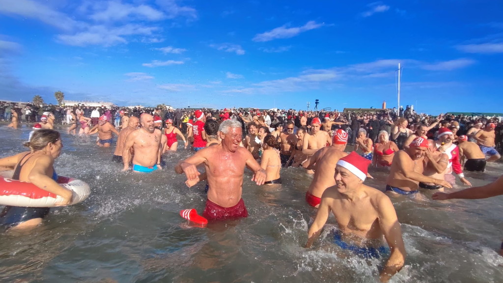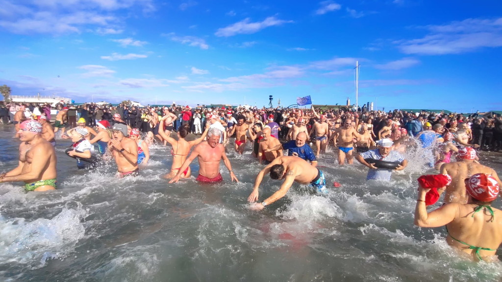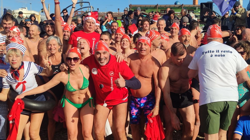 Niente muta, ma tutti rigorosamente in costume. Anche quest’anno Ostia non ha rinunciato al suo appuntamento più “pazzo” e suggestivo: il bagno di Capodanno. Erano oltre trecento i temerari che, nella mattinata del primo gennaio, hanno deciso di salutare l’arrivo del 2026 tuffandosi nelle acque del litorale romano, dando vita alla quattordicesima edizione del tradizionale bagno di Capodanno della Capitale, una tradizione iniziata nel 2013 e ormai entrata nel cuore di cittadini e curiosi. Nonostante il vento e un cielo coperto, alle 11 in punto una folla variopinta si è data appuntamento a piazza Sirio, all’altezza dello stabilimento Belsito. Costume da bagno, canottiera e tanta voglia di festeggiare: così bambini, nonni, famiglie e turisti hanno sfidato il freddo per augurarsi un nuovo anno all’insegna del coraggio e dell’allegria. Tra i partecipanti anche i più piccoli, come Viola, appena 4 anni, accanto a numerosi ultraottantenni, a dimostrazione di come l’evento sappia coinvolgere davvero tutte le età. Presente anche Giuliana Salce, medaglia d’oro ai Campionati del mondo indoor di atletica leggera di Parigi 1985 nei 3 km di marcia, accompagnata da Piergiorgio Benvenuti e Gaetano Di Staso dell’associazione Ecoitaliasolidale. A colorare ulteriormente la mattinata, tanti appassionati mascherati da Babbo Natale o da personaggi dei cartoni animati. Non è mancata la partecipazione delle associazioni locali, come Giustizia per Ostia, rappresentata dal presidente Mauro Delicato e dall’avvocato Guido Pascucci, né quella di numerosi stranieri. Sull’arenile e in acqua, smartphone alla mano, la folla ha immortalato l’evento con foto e selfie, trasformando il tuffo collettivo in una festa condivisa. C’è chi ha resistito solo pochi secondi e chi, invece, si è trattenuto “a mollo” per diversi minuti, divertendosi a schizzarsi e a ridere tra le onde. Un modo originale e fuori dagli schemi per iniziare il nuovo anno. A commentare l’evento è stato Luciano Vietri, ideatore del bagno di Capodanno di Roma con la sua Swimming Travel: «Una grandissima sorpresa aver trovato, come ogni anno, tutti questi amici. Una giornata piena di sorprese e di pensieri positivi che fanno sperare in un anno ricco di cose belle ed emozioni condivise». Un tuffo nel mare d’inverno che, ancora una volta, ha unito Ostia nel segno della tradizione e della voglia di guardare avanti.