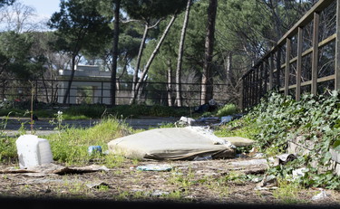 Da viale Fiorello La Guardia a viale San Paolo del Brasile, ciò che balza subito agli occhi è che, tra gli alberi, sulle panchine o a ridosso delle strutture abbandonate del parco, bivaccano gruppi di senzatetto di diverse nazionalità. Tende, cartoni, materassi, vestiti e rifiuti di ogni genere sono stati accatastati quasi in ogni angolo di un tragitto che è, a tutti gli effetti, un itinerario del degrado. I giacigli di fortuna spuntano come funghi e le fontane diventano lavatoi per i senza fissa dimora. Per non parlare della cabina dell’Acea tra viale del Museo Borghese e via Pinciana, all’ombra e sul tetto della quale più di un disperato ha allestito la sua "dimora" e montato la tenda. Con tanto di bottiglie e fornelli improvvisati su cui cucinare qualche pasto.