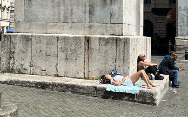 Il caldo gioca brutti scherzi. Anche a pochi passi dai palazzi del potere, nel "salotto" che il mondo ci invidia. Ieri pomeriggio, quando il sole batteva forte sulle vie del Centro, un gruppetto di turiste ha pensato bene di trasformare la base dell’obelisco di Montecitorio in una superficie sulla quale adagiarsi e andare a caccia della prima tintarella. In barba al rispetto del decoro urbano e delle regole di buon comportamento, tre o quattro ragazze hanno steso teli da mare, abbassato le spalline e tolto le scarpe per poi sdraiarsi ai piedi del monumento. Il tutto indossando abiti più consoni a una spiaggia che a una delle piazze più importanti della Capitale e sotto gli occhi attoniti dei cittadini. Una scena di ordinaria inciviltà che, con la stagione estiva alle porte, potrebbe ripetersi quotidianamente.