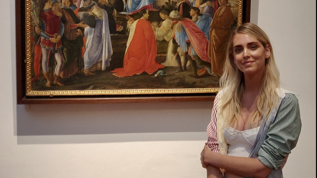 La visita è stata descritta così nel comunicato del prestigioso museo fiorentino: "Chiara Ferragni tra i capolavori degli Uffizi. La celebre imprenditrice digitale, ieri sera in Galleria per un photoshoot, ha voluto concedersi un tour del museo, alla scoperta dei suoi tesori d'arte. Accompagnata dal direttore Eike Schmidt, ha molto apprezzato i dipinti di Botticelli: non solo le superstar Venere e Primavera, ma, soprattutto, Le storie di Giuditta, e L'adorazione dei Magi con autoritratto dell'artista. Ferragni è poi rimasta incantata ad ammirare le migliaia di conchiglie di madreperla che adornano il soffitto del cuore più antico degli Uffizi, la Tribuna del Buontalenti; ed anche la statuaria ha molto colpito la sua attenzione, in particolar modo la scultura del Laocoonte realizzata da Baccio Bandinelli e l'antico marmo romano del Doriphoros di Policleto".