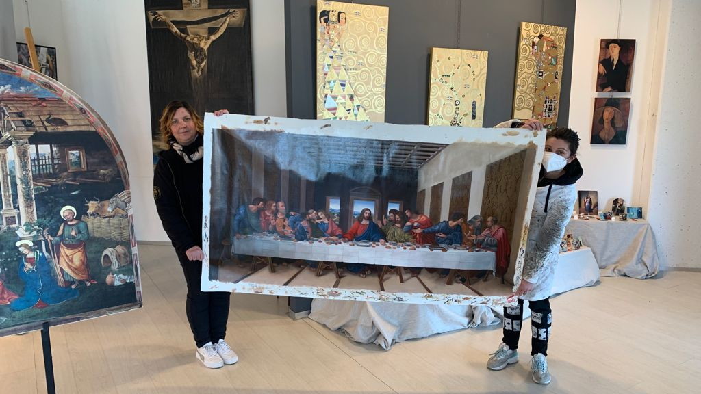 Dalla bottega artigiana al set televisivo: il pennello “hi-tech” del maestro Stefano Lazzari “colora” il successo del colossal dedicato al genio universale del Rinascimento. Oltre 140 metri quadri di pittura. La Bottega Tifernate ha infatti realizzato i dipinti utilizzati nella serie tv a puntate "Leonardo", in onda su Rai 1. Un lavoro durato un anno, in pieno lockdown, con l'impiego di tutto lo staff del celebre marchio tifernate delle riproduzioni d’autore di Stefano e Francesca Lazzari, per portare a termine opere uniche che hanno fatto da sfondo alla gettonatissima serie televisiva. Sono state ricreate tre opere in più copie ciascuna nella stessa misura dell'originale. In particolare, “L'Ultima Cena" oltre 8 metri per 4, “L'Adorazione dei Pastori” e “Il Battesimo di Cristo” sempre in dimensione extra-large davvero mozzafiato. “L'ultima Cena" – ha precisato Stefano Lazzari, titolare di un brevetto unico per questo genere di lavorazioni, non nuovo a performance cinematografico-televisive - è stata ricreata in affresco con la stessa tecnica utilizzata da Leonardo per l'originale. Abbiamo adoperato un supporto di alluminio alveolare, molto leggero e adatto per la lavorazione in affresco. E' stata ricreata in tre fasi di lavorazione differenti". "Leonardo", una serie evento tra realtà, finzione dove non mancano le venature crime, in quattro prime serate per un totale di 8 episodi in onda su Rai1 dal 23 marzo, da un'idea di Frank Spotnitz e Steve Thompson, per la regia di Dan Percival e Alexis Sweet. Nel cast internazionale ci sono, tra gli altri, Aidan Turner, Freddie Highmore (The Good Doctor), Giancarlo Giannini e Matilda De Angelis (sua musa Caterina da Cremona). “Un impegno importante, impegnativo ma che ci ha resi orgogliosi” – precisa ancora Lazzari nella sua bottega fra tradizione e hi-tech dove da poco tempo ha inaugurato anche un inedito “museo” showroom. “La nostra collaborazione con il cinema è iniziata nel 2016 con la realizzazione dei dipinti del docufilm di Sky "Raffaello, Il Principe delle Arti" e l'anno dopo, sempre per Sky, "Michelangelo, Infinito" e nel 2018 con "Io, Leonardo". In questi tre anni abbiamo realizzato anche i dipinti per la serie Rai "Il Nome della Rosa" e "I Medici 2". Ma questa ultima produzione, che ha visto la pittura di quasi 140 metri quadri, un lavoro no-stop di un anno durante anche il lockdown in sicurezza, ha messo a dura prova la nostra forza produttiva facendoci fare i cosiddetti straordinari. Dobbiamo dire che tutto lo staff si è prestato volentieri al sacrificio e oggi, rivedendo in scena il frutto del proprio lavoro, abbiamo provato una immensa felicità”, ha concluso il maestro Lazzari affiancato dalla sorella Francesca autentica “regista” di questa scenografica da consegnare ai libri di storia. “Un’altra perla di grande professionalità e dedizione al lavoro che esce fuori dalla bottega del maestro Stefano Lazzari, assieme alla sorella Francesca, al padre Romolo e allo staff giovane e qualificato e che proietta il nome della nostra città in tutto il mondo attraverso l’arte e la cultura: grati ed orgogliosi”, hanno dichiarato il sindaco Luciano Bacchetta e l’assessore alla Cultura, Vincenzo Tofanelli.