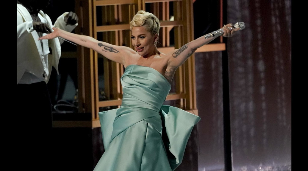 Ma non è stata solo Versace a conferire un’aria italianissima allo show: si è fatta notare anche Lady Gaga, che ha incantato tutti con un look Old Hollywood bianco e nero, un monospalla firmato Armani Privé, con un lungo strascico e diamanti di Tiffany & Co.