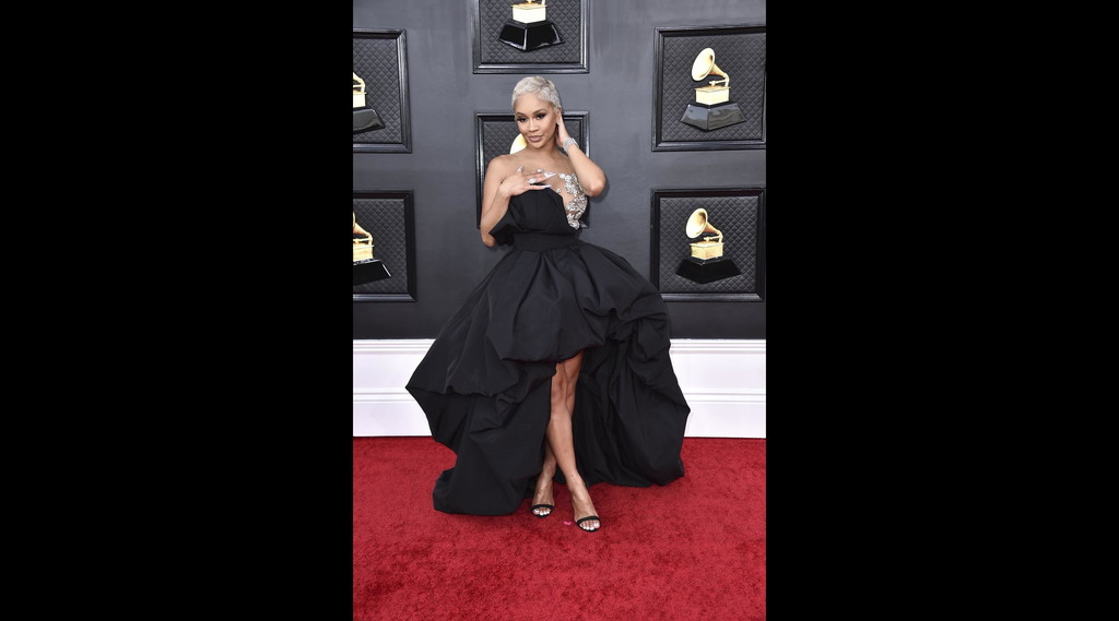 Non meno importante è stato il glamour senza tempo di Valentino: incantevole l’abito a mantella plissé verde in stile Antica Grecia indossato da Sofia Carson, così come quello di Saweetie, eccentrica ma raffinata, che si è presentata con un busto, una lunga gonna e guanti, un look total fucsia firmato Valentino Haute Couture.