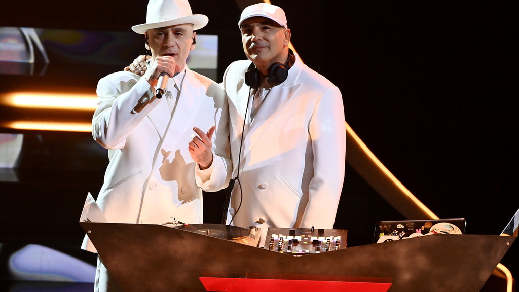 Articolo 31: a giudicare dai look scarabocchiati e firmati Dolce&Gabbana che J-Ax e Dj Jad avevano indossato a “Sanremo Giovani” per la presentazione del loro brano, gli Articolo 31 avrebbero dovuto mantenere il loro spirito divertente. E invece, il duo opta per un’inversione di rotta. Sempre firmato Dolce&Gabbana, ecco il completo “Gelataio” per eccellenza: un oversize in total white, con giacca doppiopetto. Bianche anche le scarpe così come i due cappelli scelti, il borsalino ed il basco. Eleganti, questo senza dubbio, ma le aspettative erano altre!