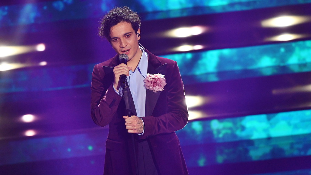 Tananai: per lui si vociferava di “un nuovo look”, mai rivelato. Ed ecco che si presenta con uno spezzato, composto dal Pantalone nero classico, a vita tendenzialmente alta, accompagnato da una camicia celeste e, tocco di stile, la giacca in velluto bordeaux con il dettaglio del fiore sul rever. Elegante, leggiadro, semplice e non banale. Ci piace.