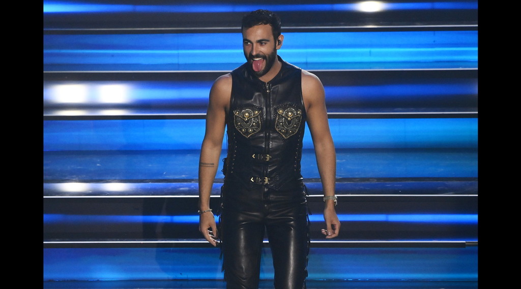 Marco Mengoni: attualmente il plausibile vincitore del festival, Mengoni ripropone ancora una volta lo stile da cattivo ragazzo alla “Easy Rider” con il suo, ormai quasi “consueto”, completo in pelle firmato Versace. Pantalone skinny, gilet prezioso con zip, cinturini e tasche arricchite di borchie. Un look aggressive stile anni 70, coerente con il primo dark outfit sfoggiato dal cantante nella prima serata. Sorprendente? No! Ripetitivo piuttosto.