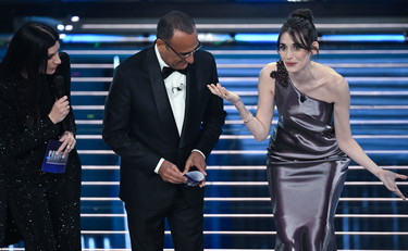 21: 52 - Armani Prive veste Pilar Fogliati co-conduttrice di questa serata. Classe, 1992, è un’attrice che riesce a condensare in sé talento, fascino, temperamento gioioso e coinvolgente. Sul palco porta uno dei personaggi del film "Romantiche", Uvetta. Uvetta Budini di Raso è l’aristocratica del centro di Roma, che in città non resta mai più di un paio di mesi all’anno. Viaggia di continuo, sempre ospite da qualche parente o amico ancora più ricco. Gli occhi sgranati e stralunati di Fogliati descrivono bene questo archetipo di romana che non è poi così difficile incontrare in città. La sua alienazione dal mondo è improvvisamente interrotta dal desiderio di fare qualcosa, persino lavorare, e da un incontro speciale al momento giusto. "È pazzesco, siete bellissimi: la fate ogni anno questa cosa? È il vostro lavoro? Percepite del danaro per questa cosa?", chiede a Carlo Conti e Laura Pausini.