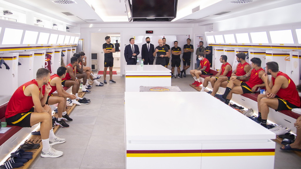 Per il resto della squadra (tornati anche Dzeko, Spinazzola e Florenzi, dopo gli impegni in nazionale) prima spazio alla parte atletica, poi un torello a bassa intensità e una partitella a ranghi ridotti in vista del test amichevole di sabato 12 settembre alla Sardegna Arena (porte aperte, massimo 1000 spettatori) contro il Cagliari. Assenti, oltre al lungodegente Pastore, gli altri due giocatori ancora in isolamento: Kluivert e Bruno Peres.