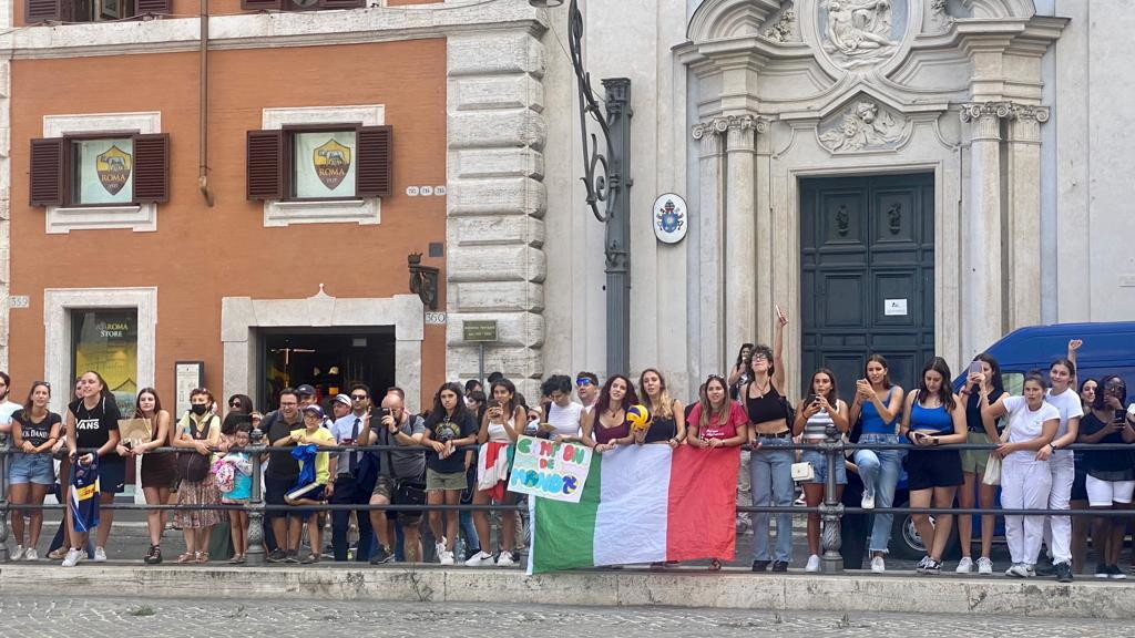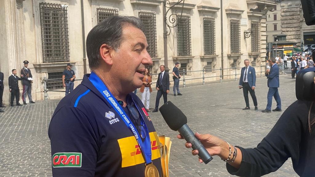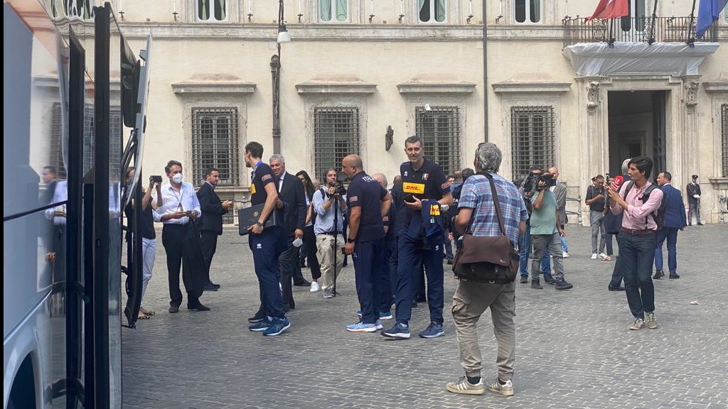Dopo il trionfo di Katowice, la nazionale italiana è rientrata a Roma, ricevuta al Quirinale dal Presidente della Repubblica Sergio Mattarella. Alcuni tifosi hanno accolto i neocampioni del mondo con applausi e cori d’incitamento, mentre i giocatori della nazionale italiana salutavano e mostravano la coppa nelle mani del capitano, Simone Giannelli. Quest’ultimo ha consegnato al Presidente della Repubblica Mattarella un pallone di volley con tutte le firme degli azzurri. Copione simile a Palazzo Chigi. "Dopo un momento magico lo sport italiano ha vissuto una serie di delusioni ma, assieme agli atleti e alle atleti degli Europei di nuoto, avete interrotto questo momento negativo. Siete la dimostrazione che i veri campioni prima o poi tornano a vincere e che lo spirito di squadra, la voglia di lavorare bene insieme pagano sempre, e non solo per lo sport. È un gran bel segnale per l’Italia tutta", ha detto il premier Mario Draghi agli azzurri del volley, ricevuti a Palazzo Chigi. Gli azzurri guidati dal ct Fefè De Giorgi si sono concessi a obiettivi e taccuini davanti alla sede del governo dove il aspettava un gruppo di tifosi in festa.