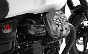 L’equipaggiamento prevede inoltre gli specchi retrovisori “bar end”, che donano alla Stone Ten un profilo ancora più filante e dinamico, e il tappo per il rifornimento in alluminio ricavato dal pieno anodizzato nero. Le personalizzazioni si estendono anche al twin 850 Moto Guzzi, con i coperchi delle teste in un raffinato color grafite e le protezioni dei corpi farfallati in alluminio anodizzato nero.