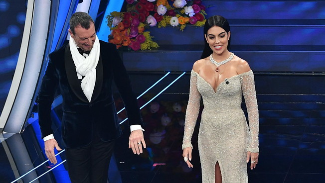 Sanremo, tocca a Georgina In prima fila Cristiano Ronaldo