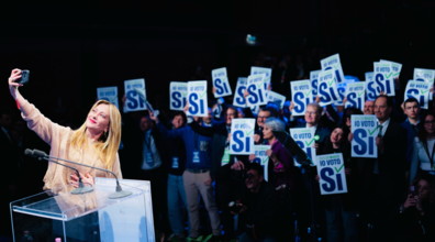 Milano, Teatro Parenti. L'appello per il Sì di Meloni