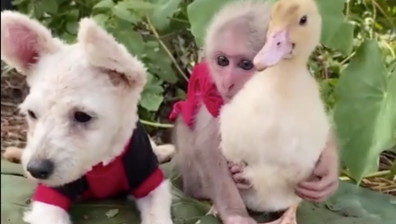La scimmia, il cane e l'anatra: un legame indissolubile. La bellezza degli animali