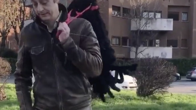 Salvini e il cane che gli porta la spesa... ma dov'è l'autocertificazione?