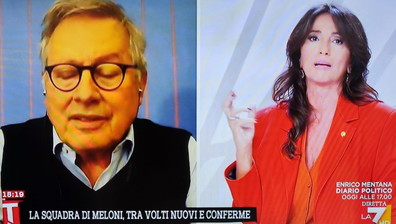Liguori difende la vignetta su Arianna Meloni e Palombelli lo fulmina: “Perché è sbagliata”