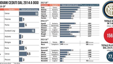 L'Inter e le baby plusvalenze: in 5 anni 150 milioni di incassi