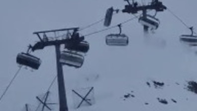 Cervinia, raffiche di vento a 100 km/h: la seggiovia ondeggia paurosamente