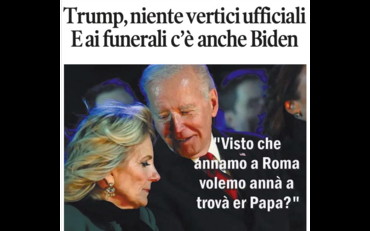 Il Tempo di Osho, la vignetta di oggi: Trump e Biden ai funerali del Papa (venerdì 25 aprile)