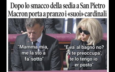 Il Tempo di Osho, la vignetta di oggi: Macron ai funerali del Papa (lunedì 28 aprile)