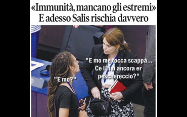 La vignetta di Osho sulla prima pagina de Il Tempo di giovedì 5 giugno. Per Ilaria Salis torna l’incubo processo. Il relatore sull’immunità: “Non ci sono più gli estremi”. Si va verso la richiesta di revoca: le sinistre protestano.