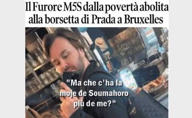 La vignetta di Osho sulla prima pagina de Il Tempo di martedì 21 ottobre. Mario Furore, eurodeputato M5S, sfoggia l’accessorio firmato e quando la foto inizia a circolare ecco che per magia sparisce dal suo profilo.