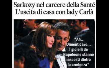 La vignetta di Osho sulla prima pagina de Il Tempo di mercoledì 22 ottobre. Nicolas Sarkozy va in carcere cantando La Marsigliese. L’ex presidente della Repubblica francese finisce in cella. Accompagnato da un corteo di sostenitori e dalla moglie Carla Bruni, ha intonato l’inno: «In galera ci va un innocente. La storia non è finita qui».