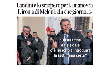 La vignetta di Osho sulla prima pagina de Il Tempo di sabato 8 novembre. Il leader della Cgil, Maurizio Landini, sceglie il 12 dicembre per protestare contro la manovra del governo di centrodestra. La premier Giorgia Meloni sui social ironizza sul solito venerdì di sciopero per non lavorare. Punge anche Carlo Calenda: “Maurizio è per l’automotive di Elkann vero?”.