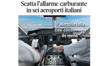 La vignetta di Osho sulla prima pagina de Il Tempo di martedì 7 aprile 2026. Anche l’aeroporto di Brindisi tra gli scali italiani a corto di carburante a causa del conflitto in Medioriente. Il disagio è stato segnalato dai nuovi "Notam", i bollettini aeronautici diffusi ieri e pubblicati su alcuni siti specializzati. Nel messaggio si leggeva che il carburante Jet A1 non era disponibile e che quantitativi limitati erano riservati esclusivamente ai voli di Stato, SAR e ospedalieri. Gli effetti della guerra in Iran sono sempre più evidenti, pure in Italia.