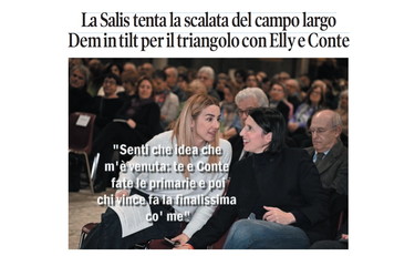 La vignetta di Osho sulla prima pagina de Il Tempo di domenica 12 aprile 2026. Silvia Salis scuote il centrosinistra e punta alla leadership nazionale, approfittando delle tensioni tra Elly Schlein e Giuseppe Conte. La sua ascesa irrita il Pd e accende il dibattito interno sul futuro del “campo largo”. Tra ambizioni personali e divisioni politiche, la corsa alla guida della coalizione si fa sempre più aperta e incerta.