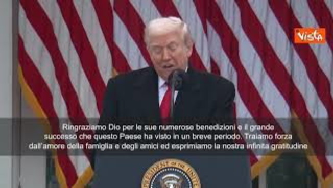 La carezza di Trump al tacchino Waddle durante la cerimonia di grazia alla Casa Bianca