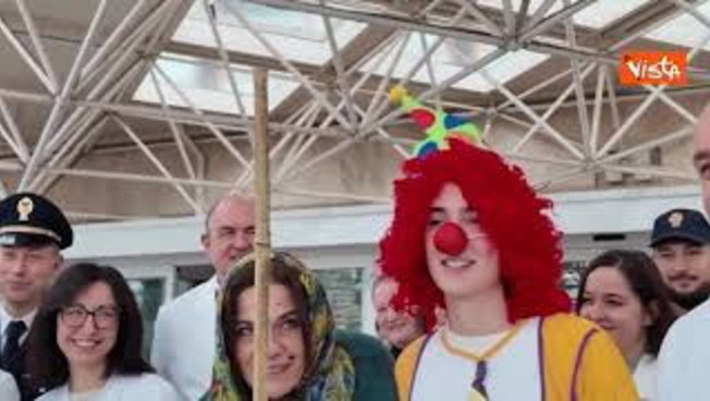 La Befana della Polizia di Stato arriva in Lamborghini all'ospedale Gemelli a Roma